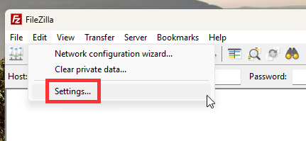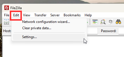 1. Open FileZilla > Click Edit