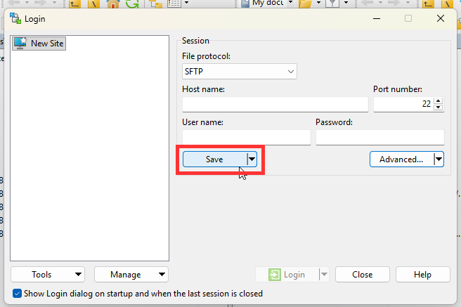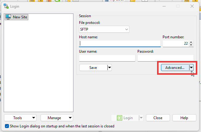 1. Open WinSCP > Click Advanced