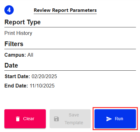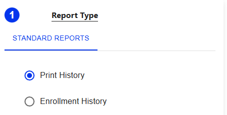 2. Select the reporting type (i.e., Print History, Enrollment History)