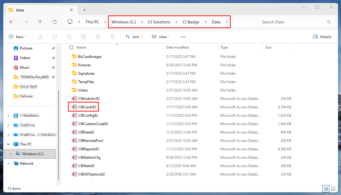 1. Go to the C Drive > CI Solutions folder > CI Badge folder > Data folder