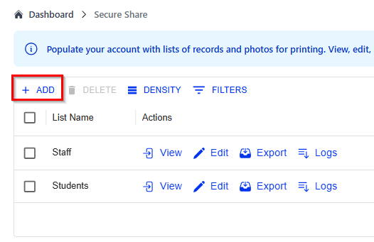In Secure Share, Badge Owners can manually create a new list (e.g., ID and Campus)