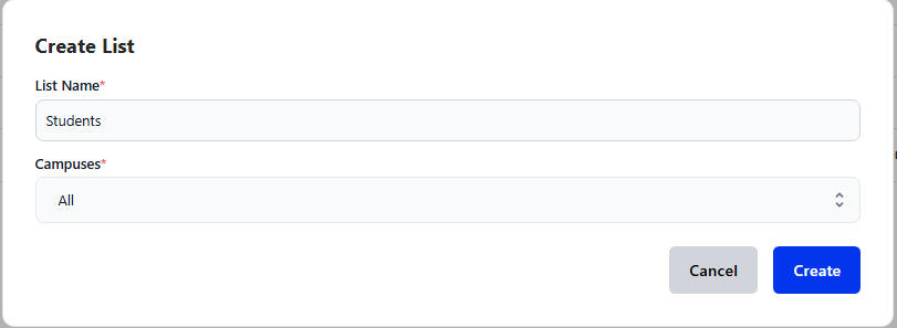 3. Enter a List Name (e.g., Students, Staff, Associates)