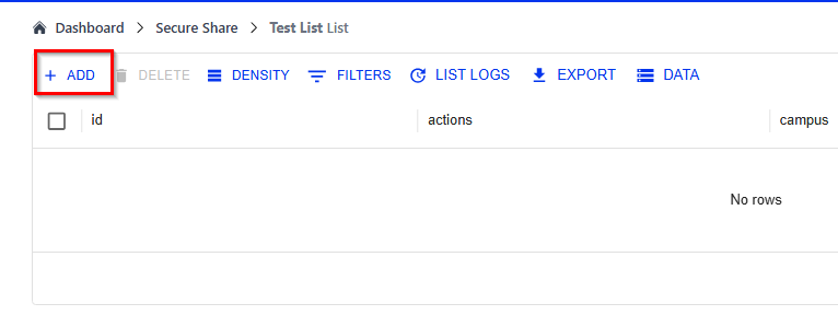 3. On the left side above the List > Click ADD