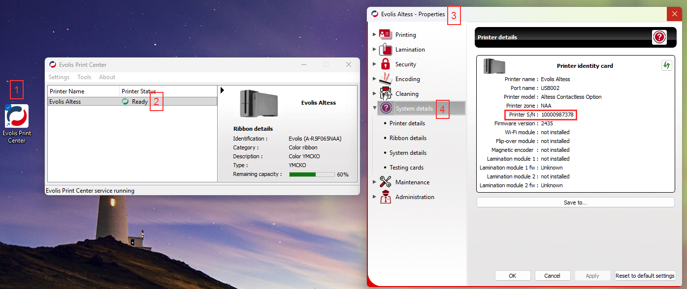 4. On the left side, select System Details, the Serial Number will be in the Printer Identity Card information