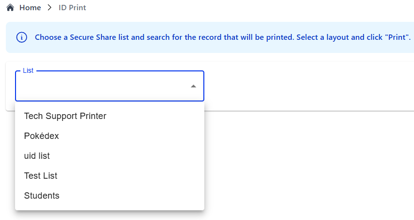 2. Click on the drop-down menu > Find and Select the List Name (e.g., school, staff, district, office) you want to view