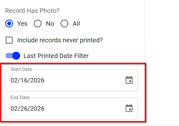 5. Toggle the Last Printed Date Filter to see records who have been printed [OPTIONAL]