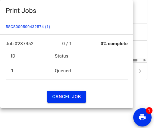 Once Batch Print begins to run, a blue printer icon will appear on the bottom right corner with a count of total cards being printed for the print job
